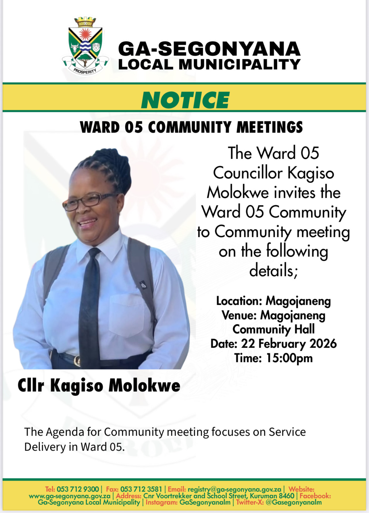 WARD 5 : Cllr Kagiso Molokwe | Area: Old Magojaneng